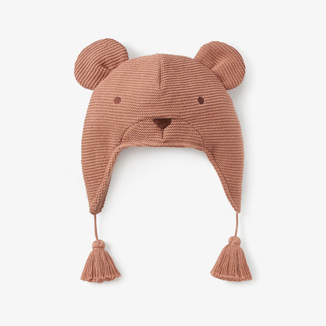 This rust-colored bear aviator knit baby hat is perfect for every adventurous babe. It is made from 100% cotton with fleece lining, excellent for keeping your baby warm on cold, windy days. Adorned with a sweet face and cotton tassel details, it really is a one-of-a-kind knit baby hat. This animal baby hat is made with the highest quality fabrics to provide maximum durability making it a truly luxury baby gift.