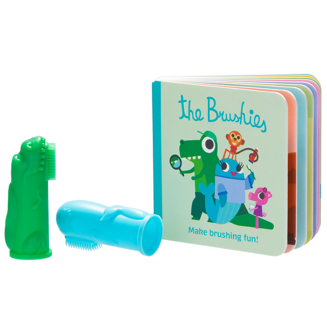 Our ALL NEW two-pack features a mini copy of The Brushies Book as well as two finger toothbrush characters to make brushing fun. The Brushies Book brings all of the Brushies to life and has brushing tips for helpers and with two characters you can act out the stories, have an extra in case one goes missing or have one on hand while the others in the dishwasher getting clean!