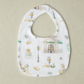 The perfect puppy themed bib for your little one's powdery beignets!