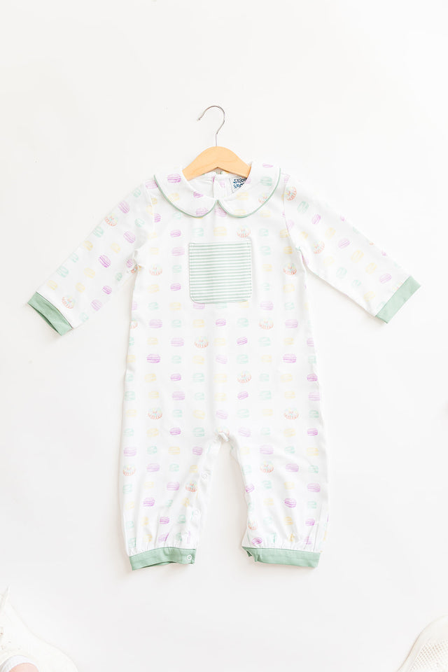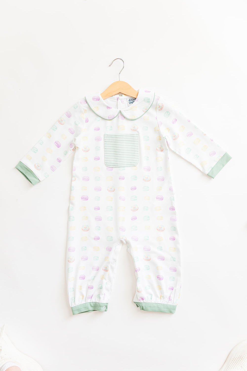 Studio Smocks Mardi Gras Macaron Uni Longall - 3mo can be ordered and will be drop-shipped. In stock items typically ship wtihin 7-10 business days.