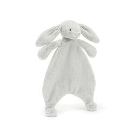 Irresistibly soft in a silver grey coloured fur made from recycled fibres, Bashful Silver Bunny Comforter features our beloved Bashful Bunny signature long lop ears, a pink suedette nose and embroidered eyes. Designed with an un-stuffed body yet delicately squashy paws and bobble feet, making it easy for little hands to grab hold of and comfort themselves.