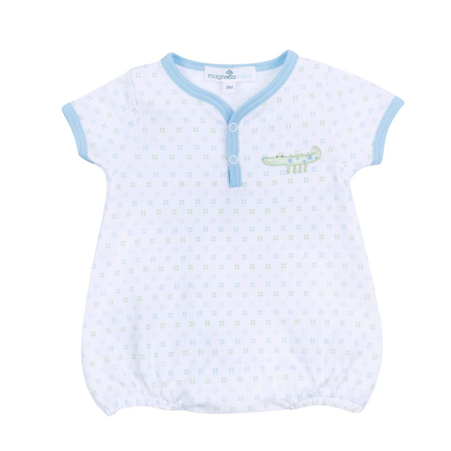 Alligator Pie Blue Pima Embroidered S/S Bubble - NB can be ordered and will be drop-shipped. In stock items typically ship wtihin 7-10 business days.