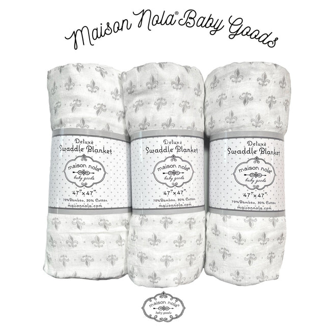Fleur de Lis Grey Bamboo Muslin Swaddle