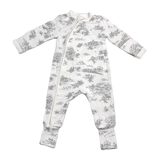 Storyland Toile Bamboo Zipper Footie PJs | Grey (convertible) - 0-3m can be ordered and will be drop-shipped. In stock items typically ship wtihin 7-10 business days.