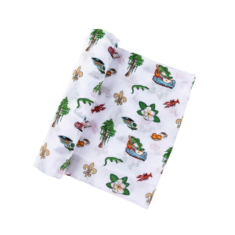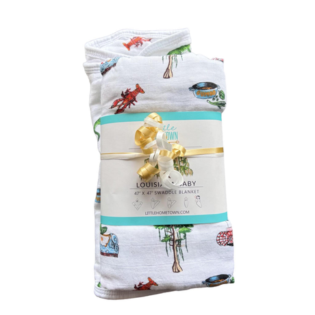 Louisiana Baby Gift Bundle: Bamboo Muslin Swaddle Blanket and Bib