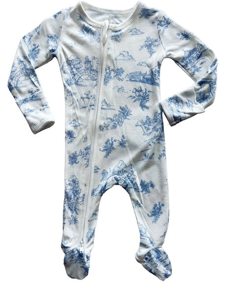 Storyland Toile Bamboo Convertible Zipper Footie PJs | Blue