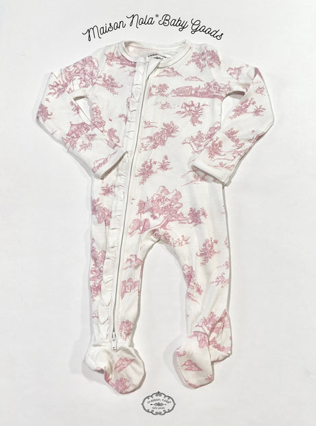 Storyland Toile Bamboo Zipper Convertible Ruffled Footie PJs | Pink