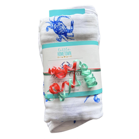 Blue Crab Gift Bundle: Bamboo Muslin Swaddle Blanket and Bib