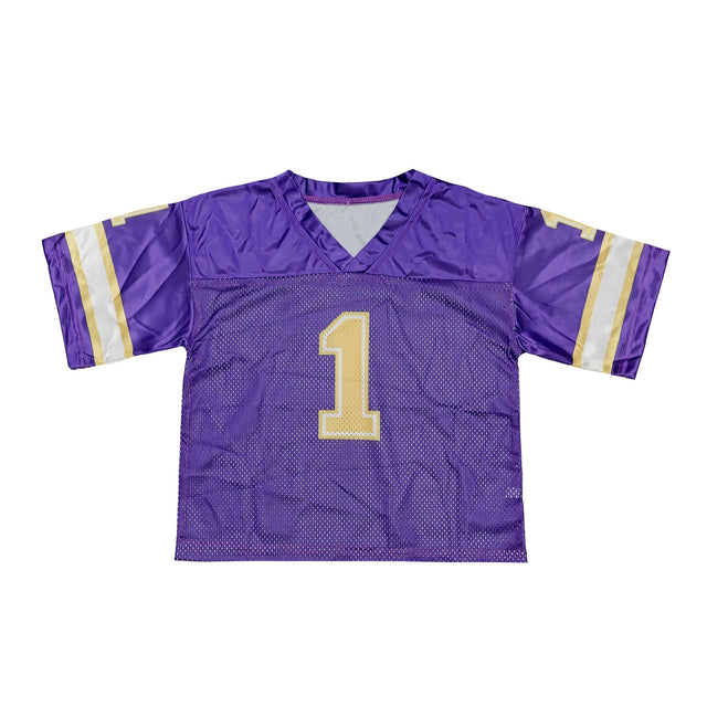 Purple & Gold Football Jersey - 2T can be ordered and will be drop-shipped. In stock items typically ship wtihin 7-10 business days.