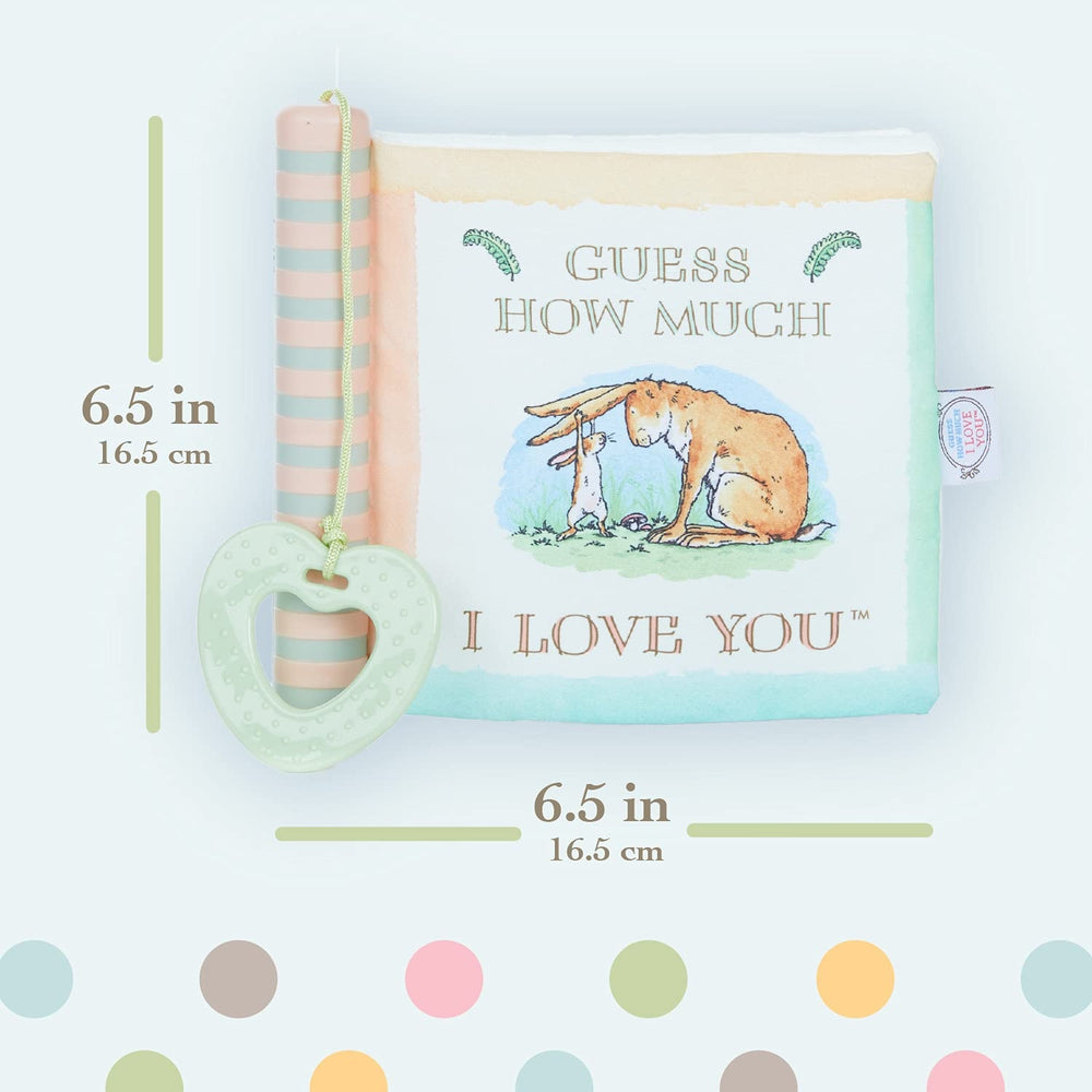 Guess How Much I Love You Activity Toy is a delightful first toy for the nursery or a sweet addition to baby's expanding library. This toy features a colorful teether spine and hanging teether heart for soothing tender gums. Awaiting discovery inside is a kissing sound and an audible "I Love You" message!