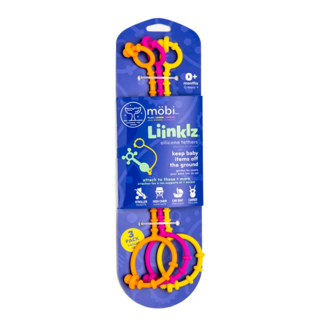 LIINKLZ® are silicone tethers that keep items off the ground....and keep parents and caregivers sane! Connect Liinklz to strollers, high chairs, car seats, carriers and more! This 3-pack will keep more of your little one’s prized possessions safe.