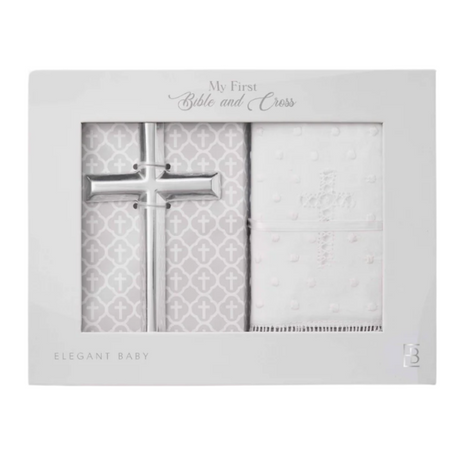 Elegant Baby Heirloom Bible and Cross Christening Gift Set