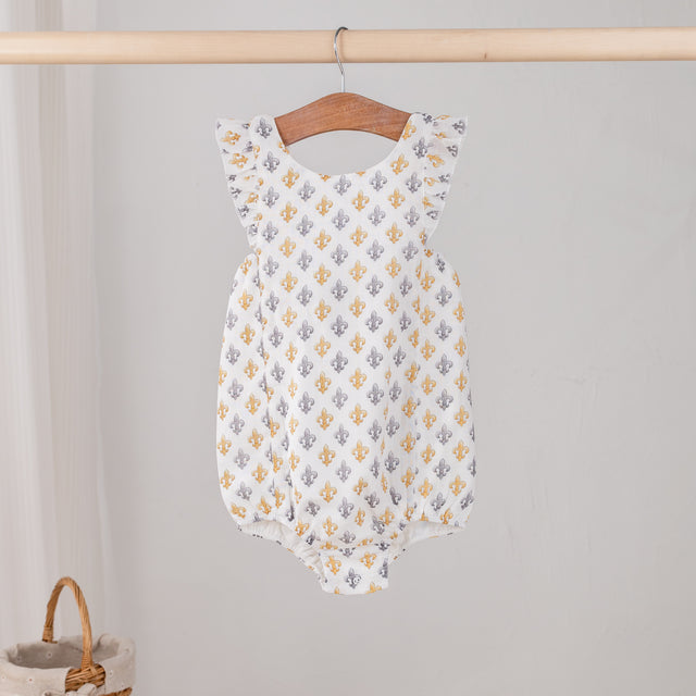Nola Tawk Black & Gold Fleur de Lis Organic Muslin Bubble Romper