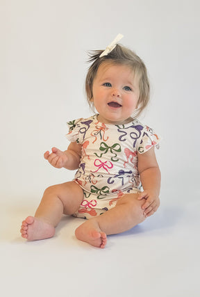 Soft, sweet, and made for sunshine days — our Flutter Bubble is the perfect one-piece for your little one’s first adventures. Designed with delicate flutter sleeves and gentle stretch, it keeps baby comfy while looking oh-so-darling.