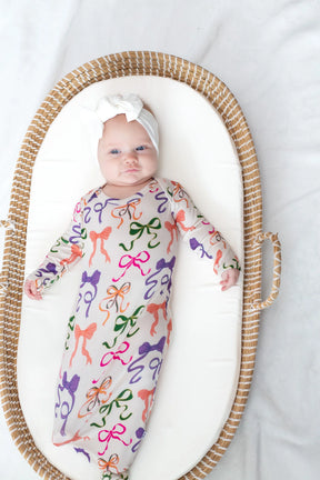 Goosies Bows Bamboo Knotted Infant Gown | 0-3M can be ordered and will be drop-shipped. In stock items typically ship wtihin 7-10 business days.