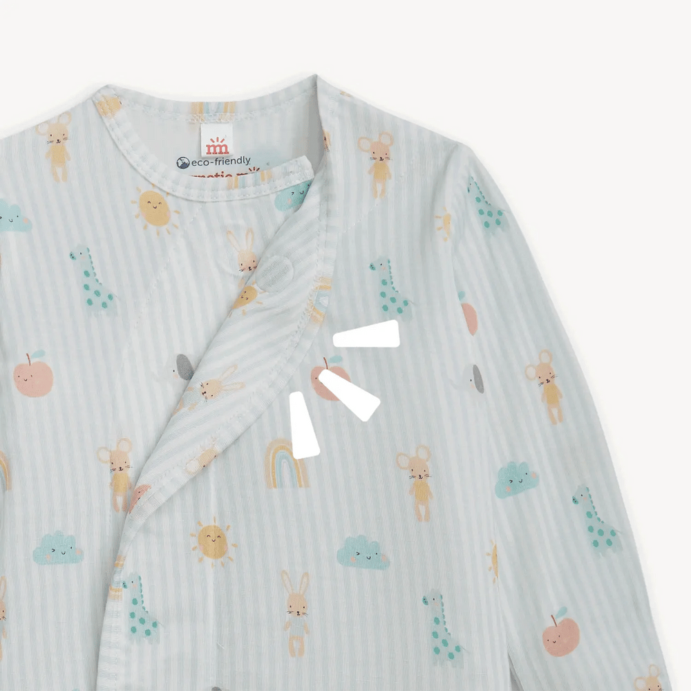 Our modal Gown & Hat Set is a newborn, late-night must-have. Magnets take diaper changes to a new level of fuss-free efficiency, while a closed bottom keeps toes and feet warm and cozy—which is mission critical during your third middle-of-the-night change. Other amazing features include the silkiest, softest modal fabric and built-in mitten cuffs.