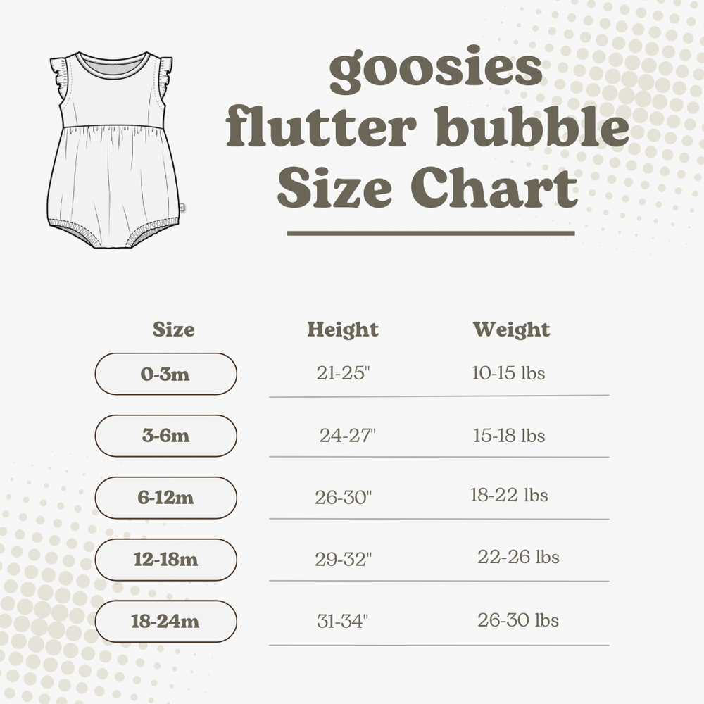 Soft, sweet, and made for sunshine days — our Flutter Bubble is the perfect one-piece for your little one’s first adventures. Designed with delicate flutter sleeves and gentle stretch, it keeps baby comfy while looking oh-so-darling.