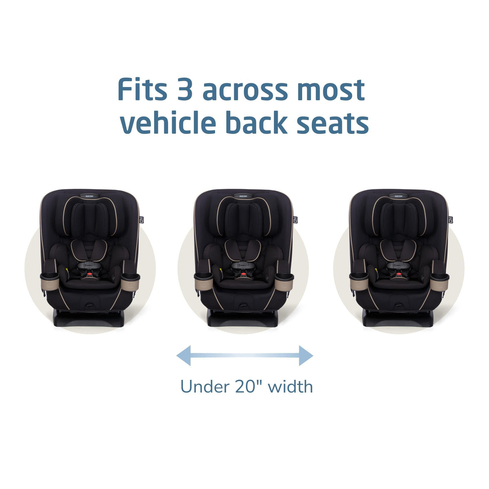 • Slim car seat design fits 3 carseats across most vehicle back seats