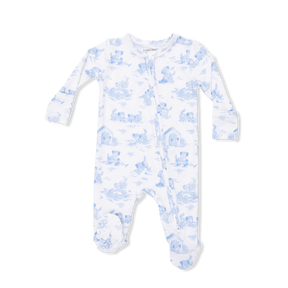 Angel Dear Puppy Toile Blue 2 Way Zipper Footie - PRE can be ordered and will be drop-shipped. In stock items typically ship wtihin 7-10 business days.