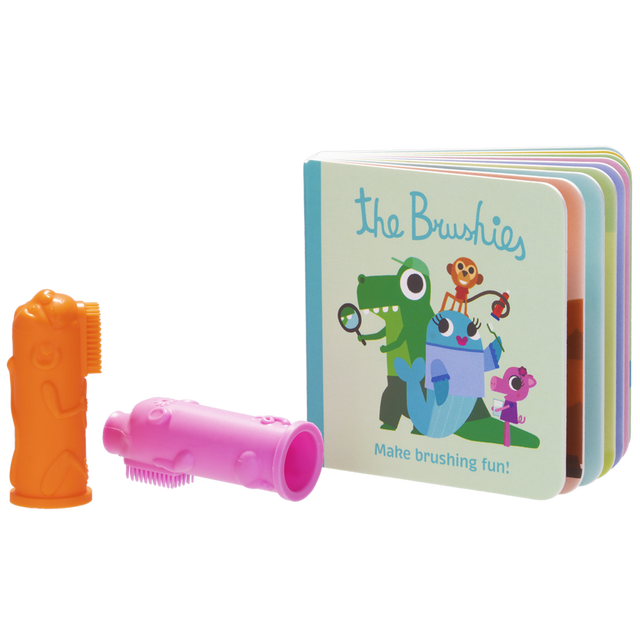 Our ALL NEW two-pack features a mini copy of The Brushies Book as well as two finger toothbrush characters to make brushing fun. The Brushies Book brings all of the Brushies to life and has brushing tips for helpers and with two characters you can act out the stories, have an extra in case one goes missing or have one on hand while the others in the dishwasher getting clean!