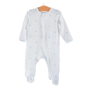 Baby Basics: Blue Fleur de Lis Organic Cotton Pajamas - 3m (2-way zip up one piece) can be ordered and will be drop-shipped. In stock items typically ship wtihin 7-10 business days.