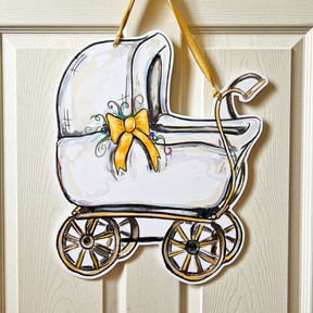 Baby Carriage Door Hanger | No Shipping - Pink can be ordered and will be drop-shipped. In stock items typically ship wtihin 7-10 business days.