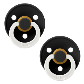 BIBS Natural Rubber Round Pacifier 2-pack | Black GLOW | Black GLOW - Size 1 (0-6 months) can be ordered and will be drop-shipped. In stock items typically ship wtihin 7-10 business days.