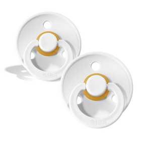 BIBS Original Natural Rubber Round Pacifier (2 Pack) | White | White - Size 1 (0-6 months) can be ordered and will be drop-shipped. In stock items typically ship wtihin 7-10 business days.