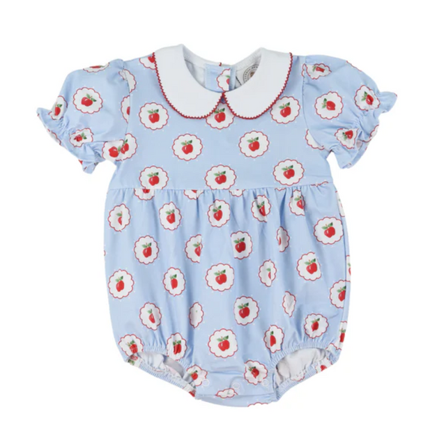 Start the school year in style with our First Day Girls Collins Classic Bubble! Featuring an all-over apple print and a timeless Peter Pan collar, this sweet bubble is the perfect blend of charm and tradition. Whether she’s headed to school, daycare, or posing for photos, this outfit makes the moment extra memorable.