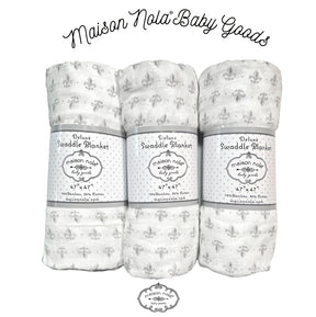Fleur de Lis Grey Bamboo Muslin Swaddle