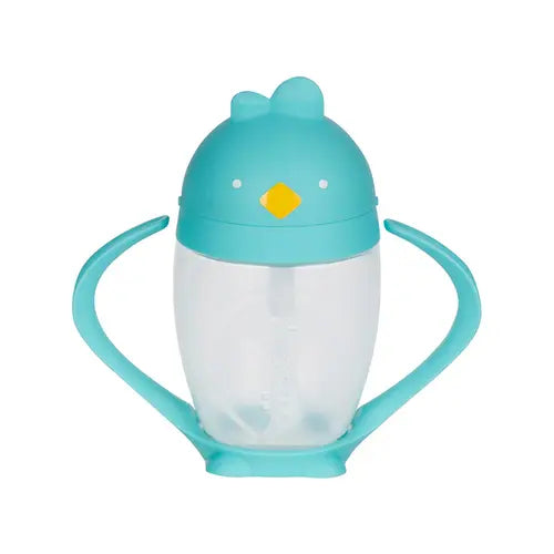 The Lollacup Sippy Cup from Lollaland features a valve-free, weighted straw that will help your little one drink from the straw independently, even when the cup is held at an angle. The unique design and fun animal shape make this cup a great option.