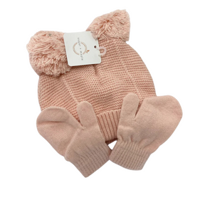 Pink Knit Hat and Mitten Set