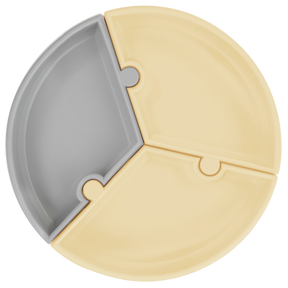 MinikOiOi Puzzle Silicone Suction Plate | Mellow Yellow Powder Grey